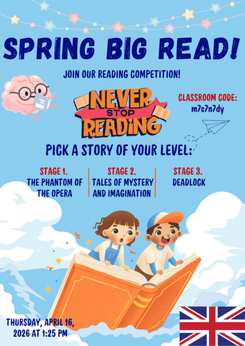 Az idei tanévben is elékezett a „Spring Big Read” tavaszi olvasó verseny ideje, amelyben a tanulók angolul és németül, nyelvi szintjüknek megfelelően tudtak az izgalmas olvasmányok közül választani.